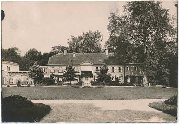 Text auf der Karte: Sakrow Schloß Entstehungszeit der Karte: ca. 1920 Kartenart: Ansichtskartenvorlage 13x18 Kartentechnik: SW-Foto Verlag: Max Hochgeladen Gelaufen/ungelaufen: ungelaufen Zustand (I=sehr gut bis V=mangelhaft): I Häufigkeit (h=häufig bis rrr=sehr selten): r Heutige(r) Straßenname(n): Krampnitzer Straße Kommentar: 1773 ließ sich Graf von der Hordt das neue Herrenhaus errichten. (Quelle: Köhler, Jan Thomas / Maruhn, Jan Sacrow Vom märkischen Dorf zum Ort der Moderne, Berlin 2005, Seite 61)