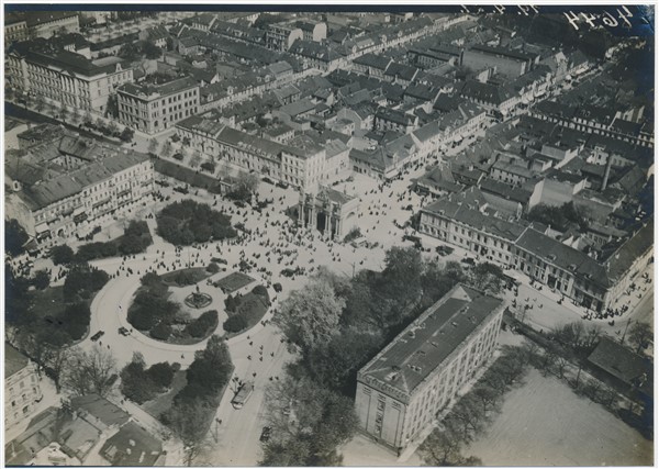 Text auf der Karte: Fliegeraufnahme vom Luisenplatz und der näheren Umgebung Entstehungszeit der Karte: ca. 1925 Straße und Hausnummer: Luisenplatz Kartenart: Ansichtskartenvorlage 12x17 Kartentechnik: SW-Foto Verlag: unbekannt Gelaufen/ungelaufen: ungelaufen Zustand (I=sehr gut bis V=mangelhaft): I Häufigkeit (h=häufig bis rrr=sehr selten): r Heutige(r) Straßenname(n): Luisenplatz Brandenburger Tor