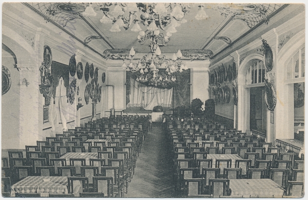 Text auf der Karte: Gruss aus dem Etablissement Schützenhaus, Potsdam Inh. Max Schulz - Fernsprecher 1303 (mit seltenem Lazarett-Stempel)