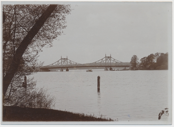 Text auf der Karte: Potsdam, Neue Glienicker Brücke vom Park Babelsberg aus Entstehungszeit der Karte: ca. 1910 Straße und Hausnummer: Neue Königstraße Kartenart: Ansichtskartenvorlage 13x18 Kartentechnik: SW-Foto Verlag: Max Hochgeladen, Potsdam Gelaufen/ungelaufen: ungelaufen Zustand (I=sehr gut bis V=mangelhaft): I Häufigkeit (h=häufig bis rrr=sehr selten): rrr Heutige(r) Straßenname(n): Glienicker Brücke Kommentar: Schinkels Glienicker Brücke, eine Bogenbrücke mit zehn Stromöffnungen und einer hochklappbaren elften Öffnung in der Mitte als Durchfahrt für die Schiffe, wurde am 30.09.1834 in Anwesenheit der Zarin Alexandra Feodorowna, der ältesten, als Prinzessin Charlotte geborenen Tochter Friedrich Wilhelms III., eingeweiht. 70 Jahre später erfolgte der Abriß. (Quelle: Bohle-Heintzenberg, Sabine / Hamm, Manfred Die Berliner Vorstadt, Berlin 1995, Seite 14)