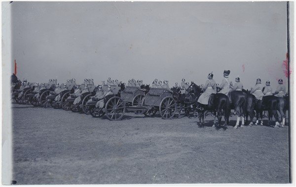Text auf der Karte: Parade der Garde-Feldartillerie Entstehungszeit der Karte: ca. 1915 Straße und Hausnummer: Nedlitzer Straße Kartenart: Ansichtskartenvorlage 12,7x18 Kartentechnik: SW-Foto Verlag: Max Hochgeladen, Potsdam, 182 Gelaufen/ungelaufen: ungelaufen Zustand (I=sehr gut bis V=mangelhaft): I Häufigkeit (h=häufig bis rrr=sehr selten): r Heutige(r) Straßenname(n): Nedlitzer Straße Kommentar: Die Kasernen des 2. und 4. Garde-Feldartillerie-Regiments lagen an der Nedlitzer Straße 9-16 und entstanden 1891-1893 unter Kaiser Wilhelm II. Es sind vier große Mannschaftskasernen im neogotischen Stil aus roten Backsteinen gegenüber dem nördlichen Teil des Bornstedter Feldes. Daneben entstanden zahlreiche Wirtschafts-, Stall- und Reitbahngebäude, kleinere Wohnhäuser und ein Offizierskasino. 1893 zog das 2., 1899 das 4. Feldartillerie-Regiment in die Kasernen ein. Zwischen 1919 und 1945 waren die Kasernen -seit 1938 unter dem Namen "Garde-Artillerie-Kaserne" - von der Reichswehr bzw. der Wehrmacht belegt. 1920 wurde der nördliche Teil der Kasernen einer neu aufgestellten Nachrichten- Abteilung (später Abteilung 43) als eigenständige Kaserne übergeben, die in der Folgezeit ausgebaut und 1938 "Delius-Kaserne" benannt wurde. 1945 bis 1994 waren in den Kasernen sowjetische bzw. russische Einheiten stationiert. Seitdem sind Teile der Kasernen für die zivile Nutzung umgebaut worden. (Quelle: Wernicke, Thomas; Götzmann, Jutta; Winkler, Kurt (Herausgeber) Potsdam Lexikon Stadtgeschichte von A bis Z, Berlin, 2010, Seite 224)