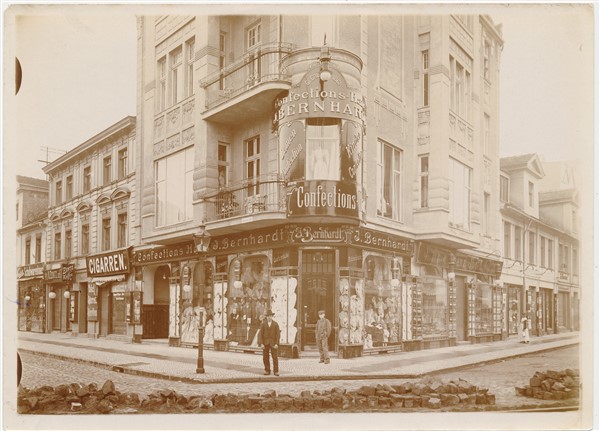Text auf der Karte: Confektionshaus J. Bernhardt Potsdam Brandenburgerstr.- u. Nauenerstr.-Ecke Fernsprecher No. 91 Entstehungszeit der Karte: vor 1908 Straße und Hausnummer: Brandenburger Straße Kartenart: Ansichtskartenvorlage 13x18 Kartentechnik: SW-Foto Verlag: Max Hochgeladen, Potsdam Gelaufen/ungelaufen: ungelaufen Zustand (I=sehr gut bis V=mangelhaft): I Häufigkeit (h=häufig bis rrr=sehr selten): r Heutige(r) Straßenname(n): Brandenburger Straße Friedrich-Ebert-Straße (Nördliche Innenstadt)