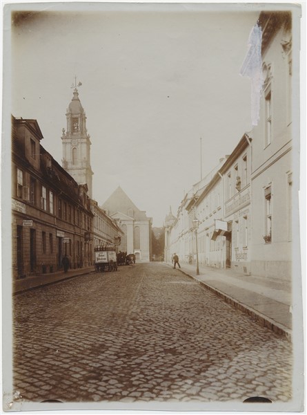 Text auf der Karte: Potsdam. Garnisonkirche, Mammonstrasse. Entstehungszeit der Karte: ca. 1910 Straße und Hausnummer: Mammonstraße (heute: W. Seelenbinder-Straße) Ecke Schloßstr. Kartenart: Ansichtskarte Kartentechnik: SW-Litho Verlag: Original-Aufnahme H. P. No. 585. Gelaufen/ungelaufen: ungelaufen Zustand (I=sehr gut bis V=mangelhaft): I Häufigkeit (h=häufig bis rrr=sehr selten): rr Heutige(r) Straßenname(n): Werner-Seelenbinder-Straße Schloßstraße