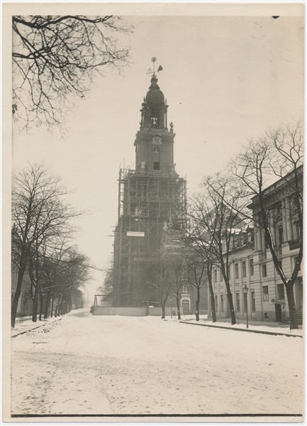Text auf der Karte: Potsdam Garnisonkirche mit Baugerüst