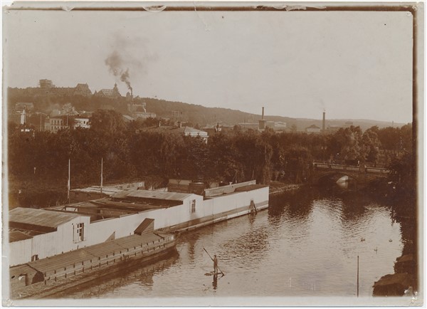 Text auf der Karte: Flussbadeanstalt und Stand up Paddler in der Alten Fahrt Entstehungszeit der Karte: ca. 1900 Kartenart: Ansichtskartenvorlage 14,8x22,3 Kartentechnik: SW-Foto Verlag: Max Hochgeladen, 562. Gelaufen/ungelaufen: ungelaufen Zustand (I=sehr gut bis V=mangelhaft): I Häufigkeit (h=häufig bis rrr=sehr selten): r Heutige(r) Straßenname(n): Lange Brücke