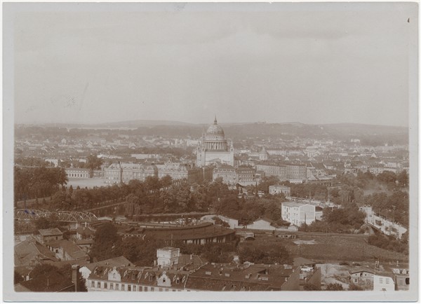 Text auf der Karte: Blick vom Brauhausberg zur Nikolai-Kirche