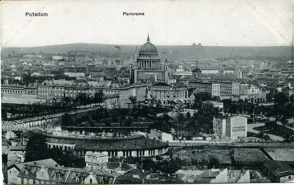 Text auf der Karte: Potsdam Panorama Entstehungszeit der Karte: ca. 1908 Kartenart: Ansichtskarte Kartentechnik: SW-Litho Verlag: R. Steinbrück, Wannsee-Berlin W. Gelaufen/ungelaufen: ungelaufen Zustand (I=sehr gut bis V=mangelhaft): I Häufigkeit (h=häufig bis rrr=sehr selten): h