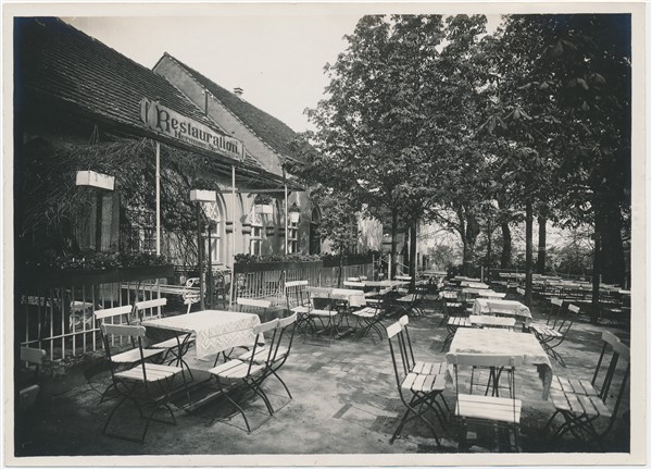 Text auf der Karte: Restaurant zum Gotischen Hause - Gartenseite Entstehungszeit der Karte: ca. 1920 Kartenart: Ansichtskartenvorlage 13x18 Kartentechnik: SW-Foto Verlag: Max Hochgeladen, Potsdam Gelaufen/ungelaufen: ungelaufen Zustand (I=sehr gut bis V=mangelhaft): I Häufigkeit (h=häufig bis rrr=sehr selten): r