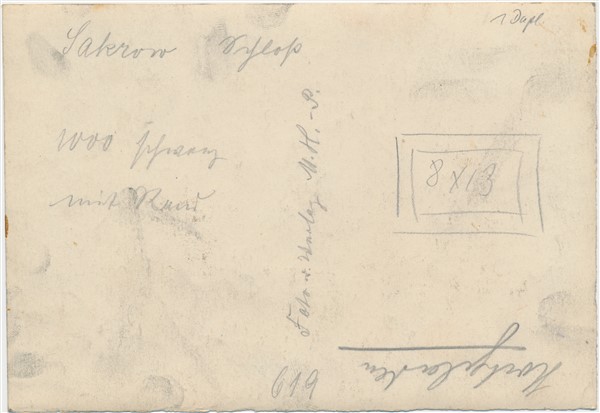 Text auf der Karte: Sakrow Schloß Entstehungszeit der Karte: ca. 1920 Kartenart: Ansichtskartenvorlage 13x18 Kartentechnik: SW-Foto Verlag: Max Hochgeladen Gelaufen/ungelaufen: ungelaufen Zustand (I=sehr gut bis V=mangelhaft): I Häufigkeit (h=häufig bis rrr=sehr selten): r Heutige(r) Straßenname(n): Krampnitzer Straße Kommentar: 1773 ließ sich Graf von der Hordt das neue Herrenhaus errichten. (Quelle: Köhler, Jan Thomas / Maruhn, Jan Sacrow Vom märkischen Dorf zum Ort der Moderne, Berlin 2005, Seite 61)