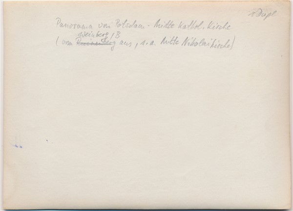 Text auf der Karte: Panorama über die Jägervorstadt Entstehungszeit der Karte: ca. 1920 Straße und Hausnummer: Mühlenberg Kartenart: Ansichtskartenvorlage 13x18 Kartentechnik: SW-Foto Verlag: Max Hochgeladen, Potsdam Gelaufen/ungelaufen: ungelaufen Zustand (I=sehr gut bis V=mangelhaft): I Häufigkeit (h=häufig bis rrr=sehr selten): r