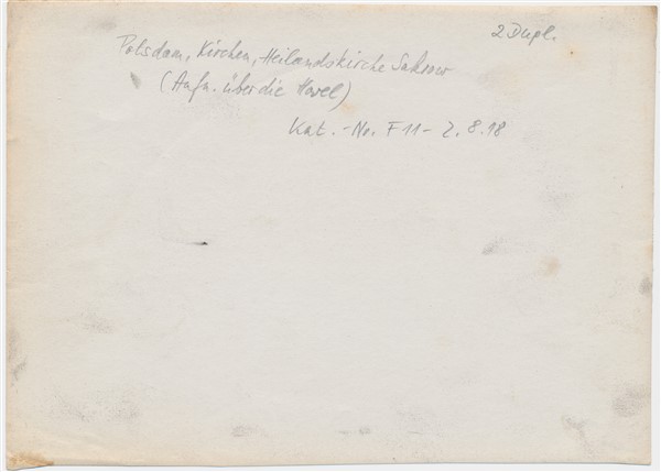 Text auf der Karte: Potsdam. Kirche in Sacrow Entstehungszeit der Karte: ca. 1910 Kartenart: Ansichtskartenvorlage 12,7x18 Kartentechnik: SW-Foto Verlag: Max Hochgeladen Gelaufen/ungelaufen: ungelaufen Zustand (I=sehr gut bis V=mangelhaft): I Häufigkeit (h=häufig bis rrr=sehr selten): r Heutige(r) Straßenname(n): Fährstraße