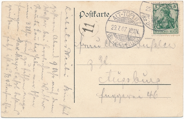 Text auf der Karte: Gruss von meiner Uberfahrt am Einhaus Nattwerder. Entstehungszeit der Karte: gestempelt Alt-Töplitz 29.07.1907 Kartenart: Ansichtskarte Kartentechnik: SW-Litho Verlag: unbekannt Gelaufen/ungelaufen: gelaufen Zustand (I=sehr gut bis V=mangelhaft): I Häufigkeit (h=häufig bis rrr=sehr selten): rr