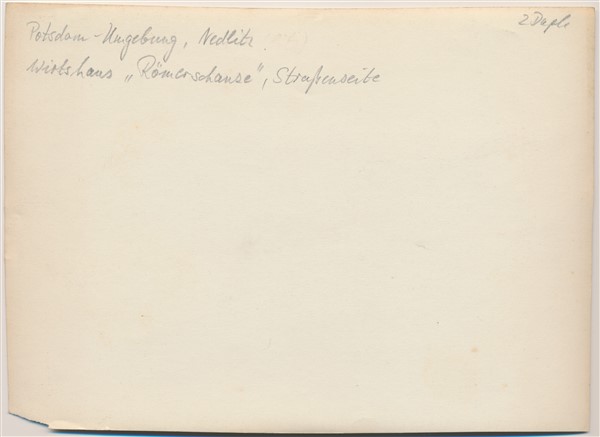 Text auf der Karte: Wirtshaus zur Römerschanze Entstehungszeit der Karte: ca. 1920 Straße und Hausnummer: Nedlitzer Straße Kartenart: Ansichtskartenvorlage 13x18 Kartentechnik: SW-Foto Verlag: Max Hochgeladen, Potsdam. Gelaufen/ungelaufen: ungelaufen Zustand (I=sehr gut bis V=mangelhaft): I Häufigkeit (h=häufig bis rrr=sehr selten): r Heutige(r) Straßenname(n): Tschudistraße