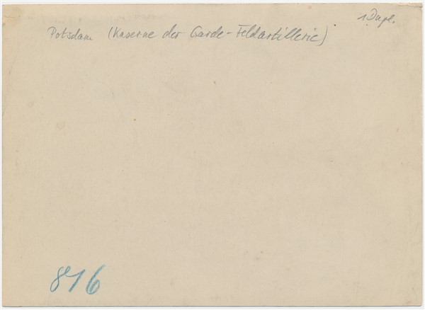 Kommentar: Die Kasernen des 2. und 4. Garde-Feldartillerie-Regiments lagen an der Nedlitzer Straße 9-16 und entstanden 1891-1893 unter Kaiser Wilhelm II. Es sind vier große Mannschaftskasernen im neogotischen Stil aus roten Backsteinen gegenüber dem nördlichen Teil des Bornstedter Feldes. Daneben entstanden zahlreiche Wirtschafts-, Stall- und Reitbahngebäude, kleinere Wohnhäuser und ein Offizierskasino. 1893 zog das 2., 1899 das 4. Feldartillerie-Regiment in die Kasernen ein. Zwischen 1919 und 1945 waren die Kasernen -seit 1938 unter dem Namen "Garde-Artillerie-Kaserne" - von der Reichswehr bzw. der Wehrmacht belegt. 1920 wurde der nördliche Teil der Kasernen einer neu aufgestellten Nachrichten- Abteilung (später Abteilung 43) als eigenständige Kaserne übergeben, die in der Folgezeit ausgebaut und 1938 "Delius-Kaserne" benannt wurde. 1945 bis 1994 waren in den Kasernen sowjetische bzw. russische Einheiten stationiert. Seitdem sind Teile der Kasernen für die zivile Nutzung umgebaut worden.