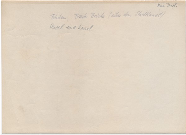 Text auf der Karte: Potsdam Breite Brücke Entstehungszeit der Karte: ca. 1910 Straße und Hausnummer: Am Kanal Kartenart: Ansichtskartenvorlage 13x18 Kartentechnik: SW-Foto Verlag: Max Hochgeladen, Potsdam Gelaufen/ungelaufen: ungelaufen Zustand (I=sehr gut bis V=mangelhaft): I Häufigkeit (h=häufig bis rrr=sehr selten): r Heutige(r) Straßenname(n): Breite Straße (Nördliche Innenstadt)