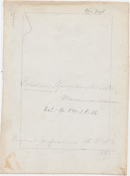 Text auf der Karte: Potsdam. Garnisonkirche, Mammonstrasse. Entstehungszeit der Karte: ca. 1910 Straße und Hausnummer: Mammonstraße (heute: W. Seelenbinder-Straße) Ecke Schloßstr. Kartenart: Ansichtskarte Kartentechnik: SW-Litho Verlag: Original-Aufnahme H. P. No. 585. Gelaufen/ungelaufen: ungelaufen Zustand (I=sehr gut bis V=mangelhaft): I Häufigkeit (h=häufig bis rrr=sehr selten): rr Heutige(r) Straßenname(n): Werner-Seelenbinder-Straße Schloßstraße