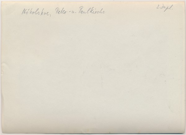 Text auf der Karte: Die St. Petri-Pauli-Kriche zu Nikoskoe (Repro eines Stahlstichs, gezeichnet u Inh. Xaver Sandmann, gedruckt bei I. Rauh in Wien) Entstehungszeit der Karte: ca. 1915 Kartenart: Ansichtskartenvorlage 13x18 Kartentechnik: SW-Foto Verlag: Max Hochgeladen, Potsdam Gelaufen/ungelaufen: ungelaufen Zustand (I=sehr gut bis V=mangelhaft): I Häufigkeit (h=häufig bis rrr=sehr selten): r