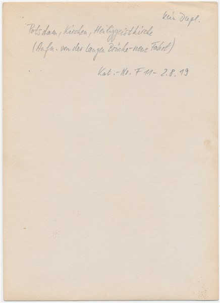 Text auf der Karte: Potsdam. Heiligegeistkirche. Entstehungszeit der Karte: ca. 1915 Straße und Hausnummer: Burgstraße Kartenart: Ansichtskartenvorlage 12,7x18 Kartentechnik: SW-Foto Verlag: Max Hochgeladen, Potsdam Gelaufen/ungelaufen: ungelaufen Zustand (I=sehr gut bis V=mangelhaft): I Häufigkeit (h=häufig bis rrr=sehr selten): r Heutige(r) Straßenname(n): Burgstraße