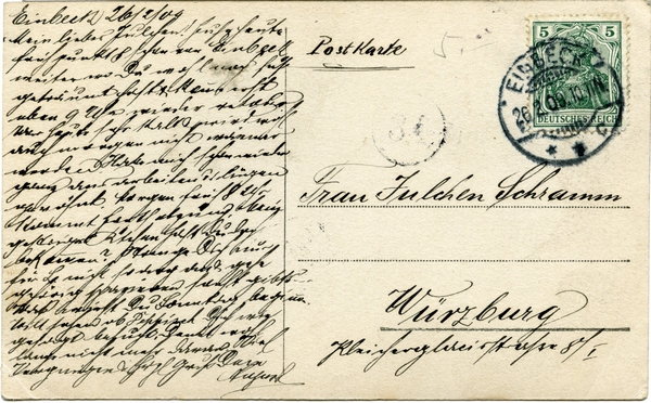 Text auf der Karte: Unsere Kronprinzessin mit Prinz Wilhelm auf der Spazierfahrt. Entstehungszeit der Karte: gestempelt 26.02.1909 Kartenart: Ansichtskarte Kartentechnik: SW-Foto Verlag: Verlag von Gust. Liersch & Co. Berlin. S. W. Gelaufen/ungelaufen: gelaufen Zustand (I=sehr gut bis V=mangelhaft): III Häufigkeit (h=häufig bis rrr=sehr selten): h