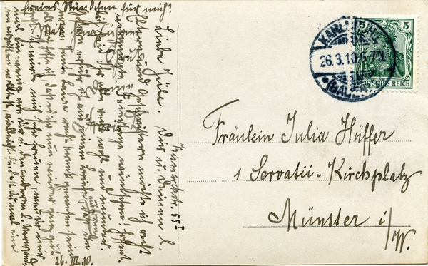 Text auf der Karte: Prinzessin Victoria Luise von Preußen Entstehungszeit der Karte: gestempelt 26.03.1910 Kartenart: Ansichtskarte Kartentechnik: SW-Foto Verlag: Verlag von Gust. Liersch & Co. Berlin. S. W. Gelaufen/ungelaufen: gelaufen Zustand (I=sehr gut bis V=mangelhaft): II Häufigkeit (h=häufig bis rrr=sehr selten): h