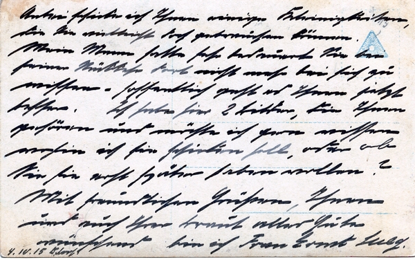Entstehungszeit der Karte: beschrieben 04.10.1915