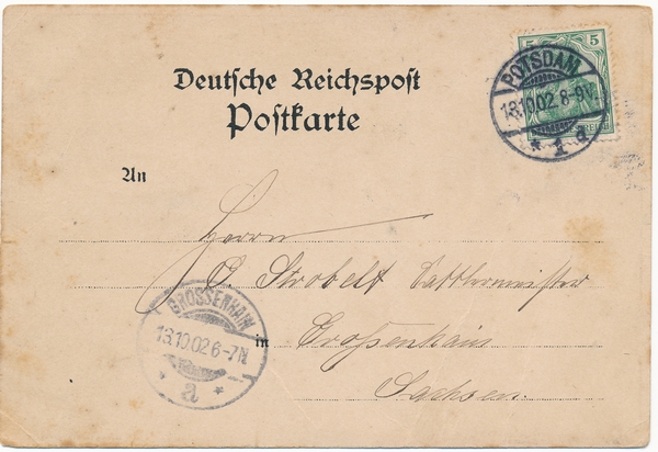 Entstehungszeit der Karte: gestempelt Potsdam 13.10.1902