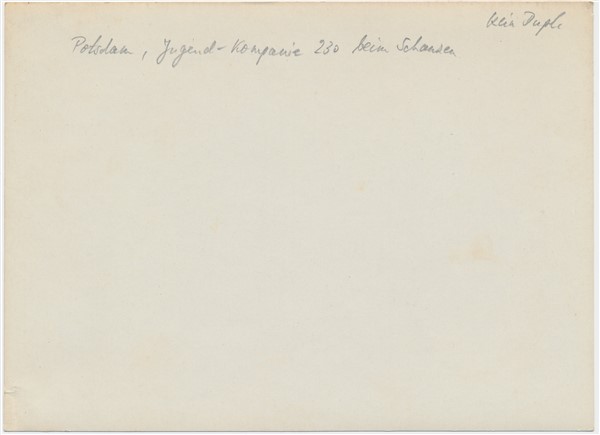 Text auf der Karte: Jugend-Kompagnie 230 Potsdam beim Schanzen