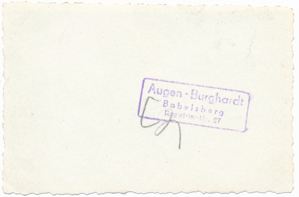 Text auf der Karte: Horch H3B mit fahrerseitiger Aufschrift Potsdam-Babelsberg Entstehungszeit der Karte: ca. 1955 Kartenart: Foto Kartentechnik: SW-Foto Verlag: Augen-Burghardt Babelsberg Registrier-Nr. 27 Gelaufen/ungelaufen: ungelaufen Zustand (I=sehr gut bis V=mangelhaft): I Häufigkeit (h=häufig bis rrr=sehr selten): r