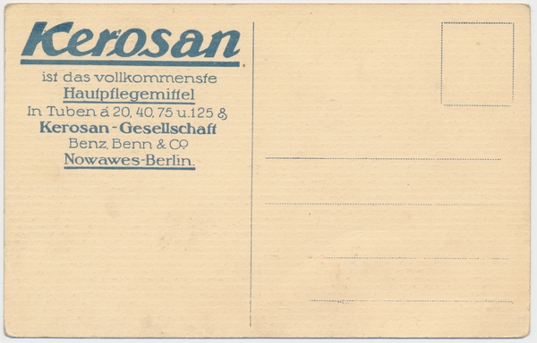 Text auf der Karte: Blick auf Heilbronn am Neckar, rückseitig bedruckt mit Kerosan ist das vollkommenste Hautpflegemittel in Tuben à 20, 40, 75 u. 125 Gr. Kerosan-Gesellschaft Benz, Benn & Co. Nowawes-Berlin. Entstehungszeit der Karte: ca. 1925 Kartenart: Ansichtskarte Kartentechnik: Kupfertiefdruck Verlag: unbekannt Gelaufen/ungelaufen: ungelaufen Zustand (I=sehr gut bis V=mangelhaft): I Häufigkeit (h=häufig bis rrr=sehr selten): r