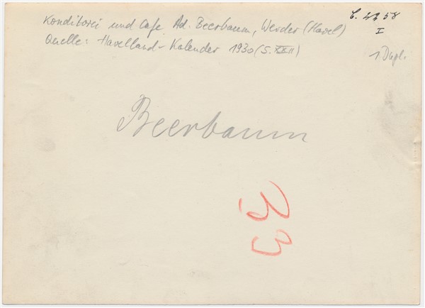 Text auf der Karte: CafĂ© Beerbaum - Inneres Entstehungszeit der Karte: ca. 1920 Kartenart: Ansichtskartenvorlage 13x18 Kartentechnik: SW-Foto Verlag: Max Hochgeladen, Potsdam Gelaufen/ungelaufen: ungelaufen Zustand (I=sehr gut bis V=mangelhaft): I Häufigkeit (h=häufig bis rrr=sehr selten): r
