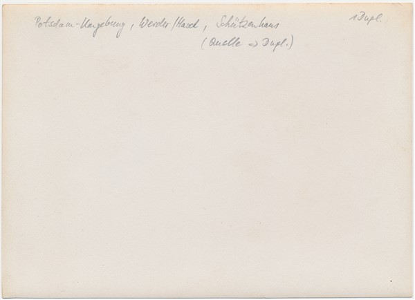 Text auf der Karte: Schützenhaus - Inselstadt Werder Entstehungszeit der Karte: ca. 1920 Kartenart: Ansichtskartenvorlage 13x18 Kartentechnik: SW-Foto Verlag: Max Hochgeladen, Potsdam Gelaufen/ungelaufen: ungelaufen Zustand (I=sehr gut bis V=mangelhaft): I Häufigkeit (h=häufig bis rrr=sehr selten): r Heutige(r) Straßenname(n): Uferstraße