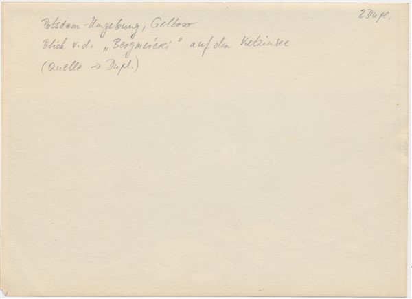 Text auf der Karte: Blick vom Restaurant zur Bergmeierei Entstehungszeit der Karte: ca. 1920 Kartenart: Ansichtskartenvorlage 13x18 Kartentechnik: SW-Foto Verlag: Max Hochgeladen, Potsdam Gelaufen/ungelaufen: ungelaufen Zustand (I=sehr gut bis V=mangelhaft): I Häufigkeit (h=häufig bis rrr=sehr selten): r Heutige(r) Straßenname(n): Zur Bergmeierei (Geltow)
