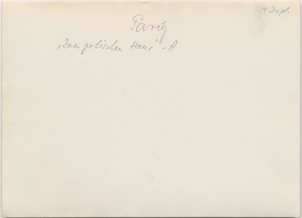 Text auf der Karte: Restaurant zum Gotischen Hause Entstehungszeit der Karte: ca. 1920 Kartenart: Ansichtskartenvorlage 13x18 Kartentechnik: SW-Foto Verlag: Max Hochgeladen, Potsdam Gelaufen/ungelaufen: ungelaufen Zustand (I=sehr gut bis V=mangelhaft): I Häufigkeit (h=häufig bis rrr=sehr selten): r