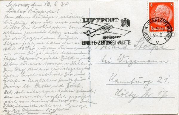 Text auf der Karte: Sacrow. Kaffee-Ausschank M. Busse Haus aus der Wendenzeit, erbaut 1717. Entstehungszeit der Karte: gestempelt Berlin-Charlottenburg 2 11.05.1934 Kartenart: Ansichtskarte Kartentechnik: SW-Foto Verlag: Atelier John Falkensee-Finkenkrug Gelaufen/ungelaufen: gelaufen Zustand (I=sehr gut bis V=mangelhaft): I Häufigkeit (h=häufig bis rrr=sehr selten): h Kommentar: siehe auch (Quelle: Köhler, Jan Thomas / Maruhn, Jan Sacrow Vom märkischen Dorf zum Ort der Moderne, Berlin 2005, Seite 12)