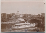 Blick vom Restaurant "Dr. Faust", Sakrow, auf Potsdam Heilandskirche rückseitig: Restaurant zum "Dr. Faust" Inh. Carl Fiebig Fernspr. Amt Potsdam 3049 |