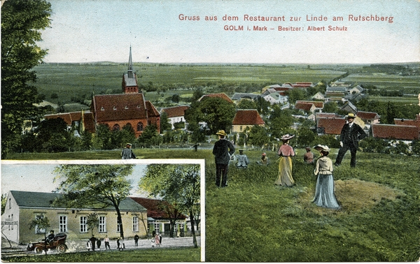 Text auf der Karte: Gruss aus dem Restaurant zur Linde am Rutschberg Golm i. M. - Besitzer: Albert Schulz Entstehungszeit der Karte: gestempelt Potsdam 22.05.1909 Kartenart: Ansichtskarte Kartentechnik: Kol. Litho Verlag: unbekannt Gelaufen/ungelaufen: gelaufen Zustand (I=sehr gut bis V=mangelhaft): I Häufigkeit (h=häufig bis rrr=sehr selten): h
