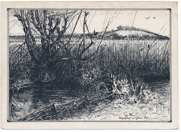 Text auf der Karte: Vorfrühling im Golmer Luch (Künstlerkarte signiert Josef Adam)