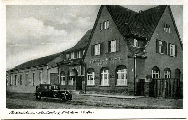 Text auf der Karte: Gaststätte am Reiherberg, Potsdam-Golm Bes. Karl Scholz Tel. Werder a. Havel 755 Auto Entstehungszeit der Karte: ca. 1950 Kartenart: Ansichtskarte Kartentechnik: SW-Foto Verlag: Aufnahme Habedank's Postkartenversand, Brandenburg (Havel) Gelaufen/ungelaufen: ungelaufen Zustand (I=sehr gut bis V=mangelhaft): II Häufigkeit (h=häufig bis rrr=sehr selten): h