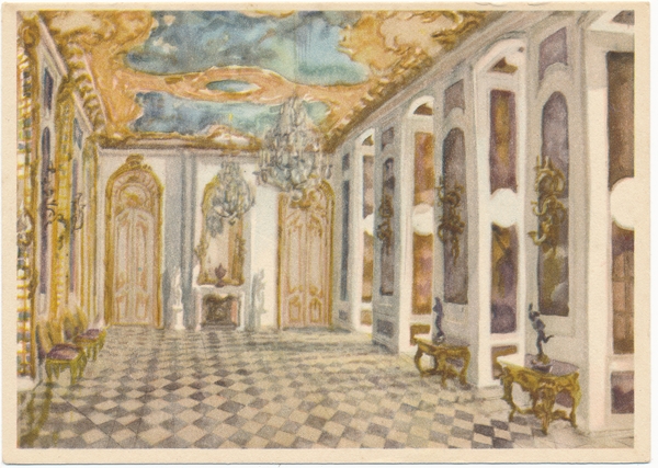 Text auf der Karte: Potsdam, Neues Palais: Jaspissaal Galerie de Jaspe - Jasper Hall Aus: Fridericianische Schlösser: 10 Tafeln nach Aquarellen von Prof. A. Thon (Mk. 3,40) Entstehungszeit der Karte: ca. 1935 Straße und Hausnummer: Park Sanssouci Kartenart: Ansichtskarte Kartentechnik: Farbdruck Verlag: Verlag: Woldemar Klein . Berlin-Wilmersdorf Nr. K 510 Gelaufen/ungelaufen: ungelaufen Zustand (I=sehr gut bis V=mangelhaft): I Häufigkeit (h=häufig bis rrr=sehr selten): h