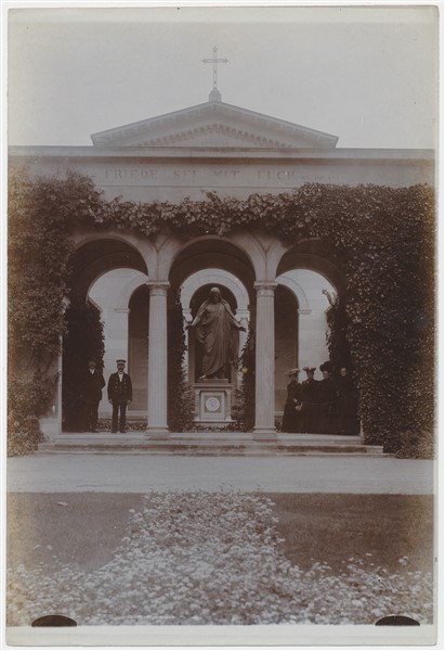 Text auf der Karte: FRIEDE SEI MIT EUCH (Innenhof der Friedenskirche) Entstehungszeit der Karte: ca. 1905 Straße und Hausnummer: Park Sanssouci Kartenart: Ansichtskartenvorlage 12x18 Kartentechnik: SW-Foto Verlag: Max Hochgeladen Gelaufen/ungelaufen: ungelaufen Zustand (I=sehr gut bis V=mangelhaft): I Häufigkeit (h=häufig bis rrr=sehr selten): r Heutige(r) Straßenname(n): Maulbeerallee