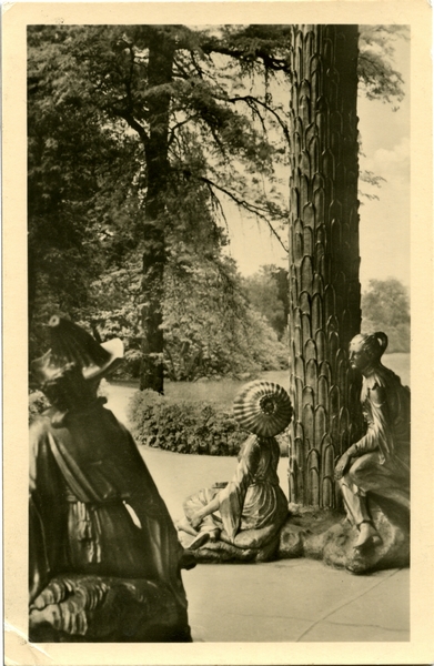 Text auf der Karte: Potsdam Am Japanischen Teehäuschen Entstehungszeit der Karte: ca. 1935 Straße und Hausnummer: Park Sanssouci Kartenart: Ansichtskarte Kartentechnik: SW-Foto Verlag: Kunstanstalt Straub & Fischer, Meinigen, Reg.-Nr. 23 Gelaufen/ungelaufen: ungelaufen Zustand (I=sehr gut bis V=mangelhaft): III Häufigkeit (h=häufig bis rrr=sehr selten): h