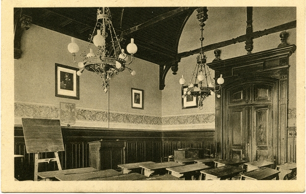 Text auf der Karte: Lyzeum Nowawes Gesangssaal (früherer Sitzungssaal der Gemeindevertretung von Neuendorf)