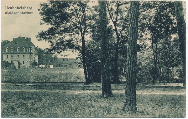 Text auf der Karte: Neubabelsberg Waldsanatorium Entstehungszeit der Karte: ca. 1915 Straße und Hausnummer: In der Aue 59-61 Kartenart: Ansichtskarte Kartentechnik: SW-Litho Verlag: Kunstverlag J. Goldiner, Berlin C. 25, Orig.-Aufn. Gelaufen/ungelaufen: ungelaufen Zustand (I=sehr gut bis V=mangelhaft): I Häufigkeit (h=häufig bis rrr=sehr selten): h Heutige(r) Straßenname(n): In der Aue Hubertusdamm Kommentar: Heute ist hier die psychiatrische Klinik des Klinikums Ernst von Bergmann untergebracht.