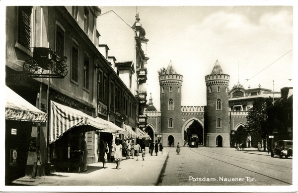 Text auf der Karte: Potsdam. Nauener Tor. Entstehungszeit der Karte: ca. 1935 Straße und Hausnummer: Nauener Straße (heute: Friedrich-Ebert-Straße) Kartenart: Ansichtskarte Kartentechnik: SW-Foto Verlag: Nr. 373 Kunstverlag Robert Hügel, Berlin S. W. 29. Gelaufen/ungelaufen: ungelaufen Zustand (I=sehr gut bis V=mangelhaft): I Häufigkeit (h=häufig bis rrr=sehr selten): h Heutige(r) Straßenname(n): Friedrich-Ebert-Straße (Nördliche Innenstadt) Nauener Tor