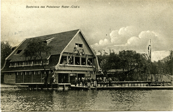 Text auf der Karte: Bootshaus des Potsdamer Ruder-Club's Entstehungszeit der Karte: gestempelt 15.08.1910 Kartenart: Ansichtskarte Kartentechnik: SW-Litho Verlag: Hofphotogr. E. Eichgrün, Potsdam. Gelaufen/ungelaufen: gelaufen Zustand (I=sehr gut bis V=mangelhaft): I Häufigkeit (h=häufig bis rrr=sehr selten): r Kommentar: Die genaue Lage des Bootshauses ist auf Karte 855 ersichtlich.
