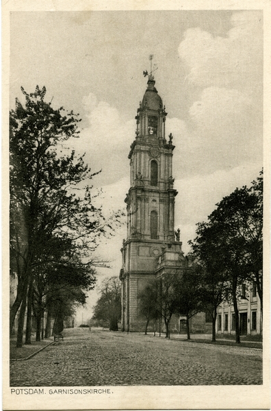 Text auf der Karte: POTSDAM. GARNISONKIRCHE. Entstehungszeit der Karte: ca. 1911 Straße und Hausnummer: Breite Straße 7 Kartenart: Ansichtskarte Kartentechnik: Kupfertiefdruck Verlag: Verlag u. Phot. von Susanne Homann, Werkstätte für moderne Lichtbildkunst, Darmstadt 1911. Serie 45. No. 6. Gelaufen/ungelaufen: ungelaufen Zustand (I=sehr gut bis V=mangelhaft): I Häufigkeit (h=häufig bis rrr=sehr selten): h Heutige(r) Straßenname(n): Breite Straße (Nördliche Innenstadt)