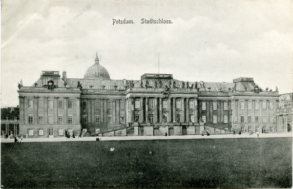 Text auf der Karte: Potsdam. Stadtschloss. Entstehungszeit der Karte: ca. 1905 Straße und Hausnummer: Alter Markt 1 Kartenart: Ansichtskarte Kartentechnik: SW-Litho Verlag: HP 96. Gelaufen/ungelaufen: ungelaufen Zustand (I=sehr gut bis V=mangelhaft): I Häufigkeit (h=häufig bis rrr=sehr selten): h Heutige(r) Straßenname(n): Alter Markt