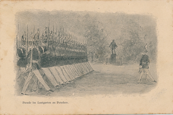 Text auf der Karte: Parade im Lustgarten zu Potsdam. Entstehungszeit der Karte: ca. 1900 Kartenart: Ansichtskarte Kartentechnik: SW-Litho Verlag: Wilhelm Köhler, Minden i. W. Gelaufen/ungelaufen: ungelaufen Zustand (I=sehr gut bis V=mangelhaft): II Häufigkeit (h=häufig bis rrr=sehr selten): h