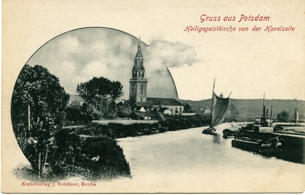 Text auf der Karte: Gruss aus Potsdam Heiligegeistkirche von der Havelseite Entstehungszeit der Karte: ca. 1900 Kartenart: Ansichtskarte Kartentechnik: SW-Litho Verlag: Kunstverlag J. Goldiner, Berlin Gelaufen/ungelaufen: ungelaufen Zustand (I=sehr gut bis V=mangelhaft): I Häufigkeit (h=häufig bis rrr=sehr selten): h