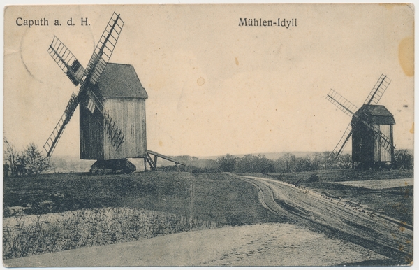 Text auf der Karte: Caputh a. d. H. Mühlen-Idyll Entstehungszeit der Karte: gestempelt Caputh 07.07.1911 Kartenart: Ansichtskartenvorlage 13x18 Kartentechnik: SW-Litho Verlag: Verlag Hugo Beyer, Caputh Gelaufen/ungelaufen: gelaufen Zustand (I=sehr gut bis V=mangelhaft): II Häufigkeit (h=häufig bis rrr=sehr selten): r